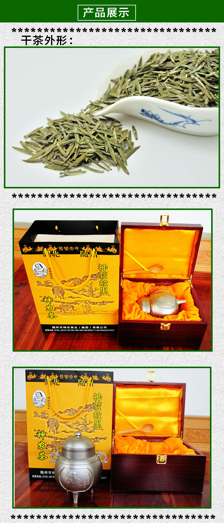 神農(nóng)有機茶:其特點是條索挺直,芽頭肥碩勻齊,銀綠隱翠,清香高鮮,滋味醇和,湯色嫩綠明亮,沖泡時茶芽立于杯底,形似銀劍豎立,亦像雨后春筍,蔚為壯觀。由于該茶產(chǎn)地位于產(chǎn)地湖北隨州位于中緯度季風(fēng)環(huán)流區(qū)域的中部,地處長江流域和淮河流域的交匯地帶,位于北緯31度19分至32度26分之單間,科學(xué)研究證明,北緯30度±2度,地帶氣溫適宜,該產(chǎn)地所產(chǎn)茶葉能兼顧外形和內(nèi)質(zhì),酚氨比在10左右,是優(yōu)質(zhì)綠茶的理想生長條件區(qū)域。